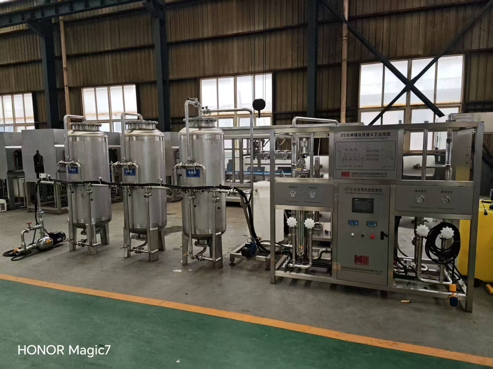 反滲透系統主要設備有石英砂過濾器,活性炭過濾器,鈉離子交換器,RO(反滲透),紫外線消毒器,精密過濾器,臭氧發生器,水箱等。處理能力為0.5-50噸/小時。它可以有效地去除泥濘的有機物,鐵,錳和氧化物,過濾懸浮物,膠體,微生物殘留的氧和水中的一些重金屬離子,降低水的硬度,使各種規格的水質完全符合國家淡水標準的淡水。